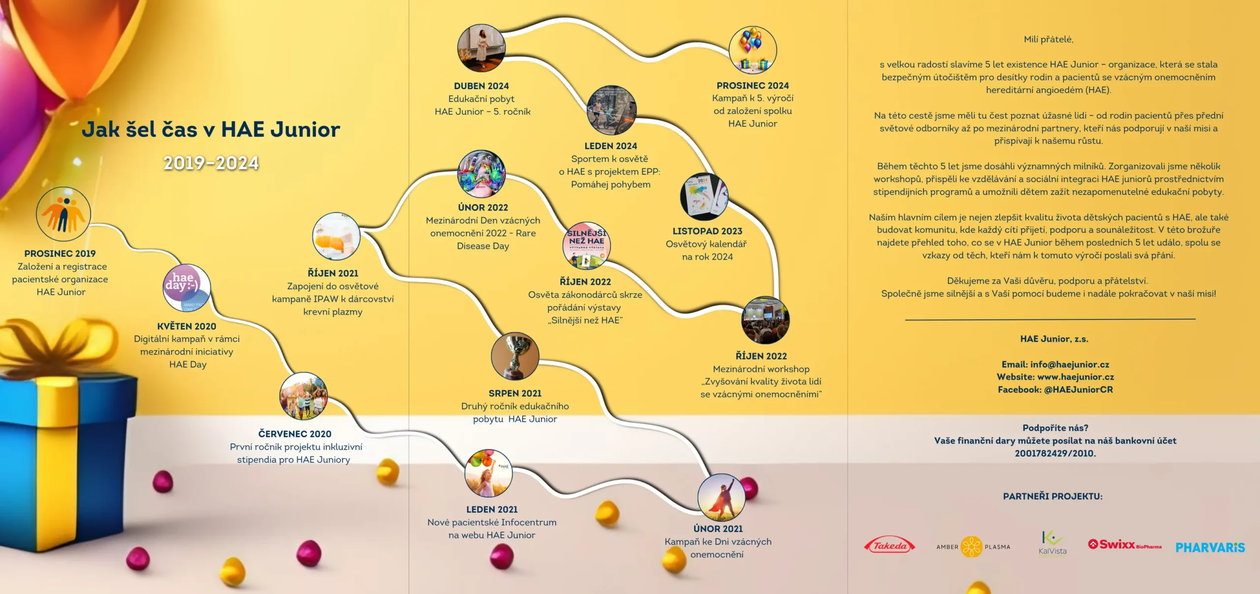 V první polovině roku 2021 proběhla úspěšná kampaň s podporou Nadace ČEZ v rámci programu EPP: Pomáhej pohybem, jejímž cílem bylo zajistit financování termosad první pomoci pro pacientskou komunitu HAE Junior.